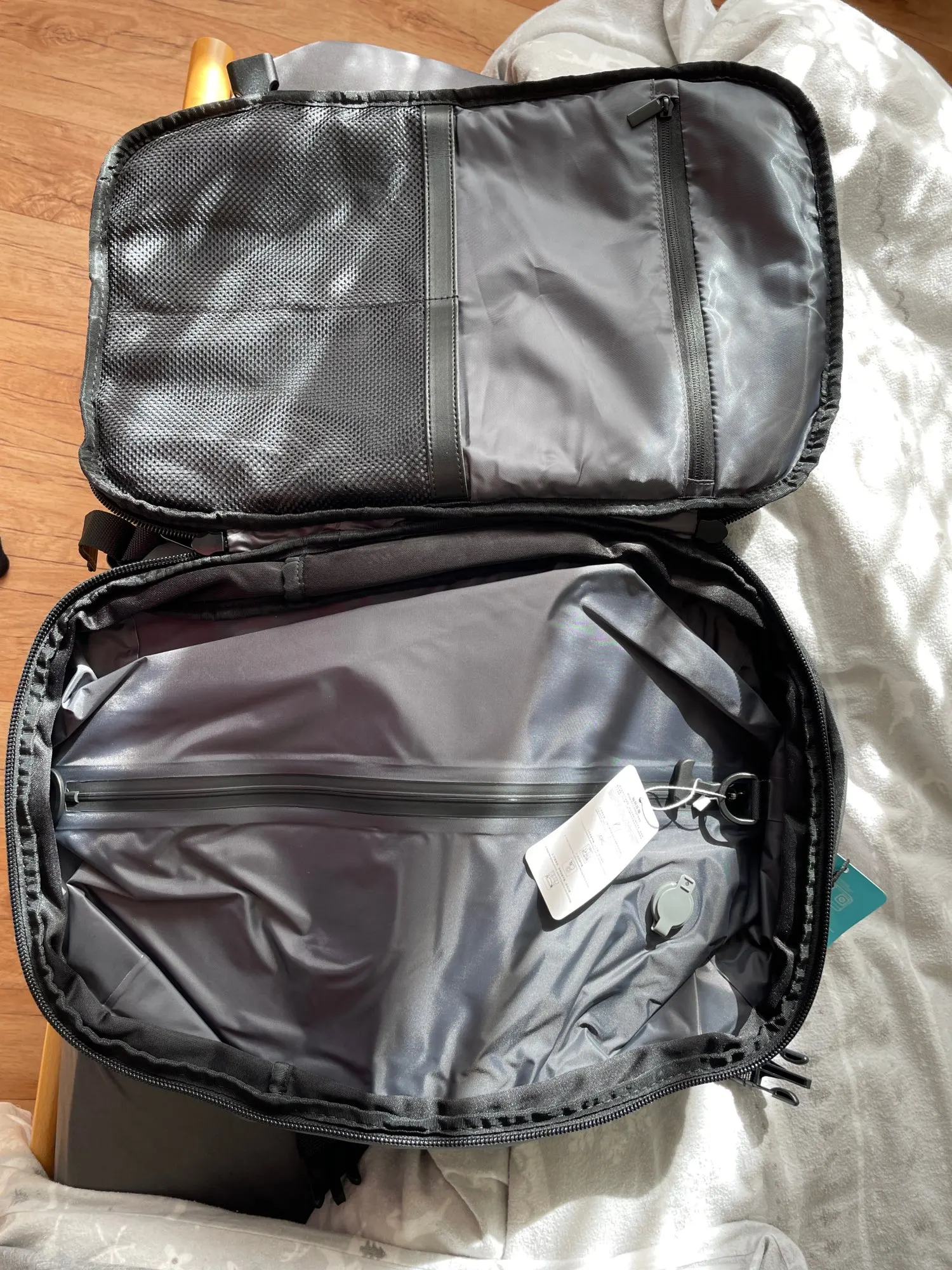 Der Rucksack ist groß 😀 Der Vakuum ist funktional, aber der Rucksack kam ohne Pumpe, also habe ich ihn in einem anderen Shop gekauft... Material ist stark